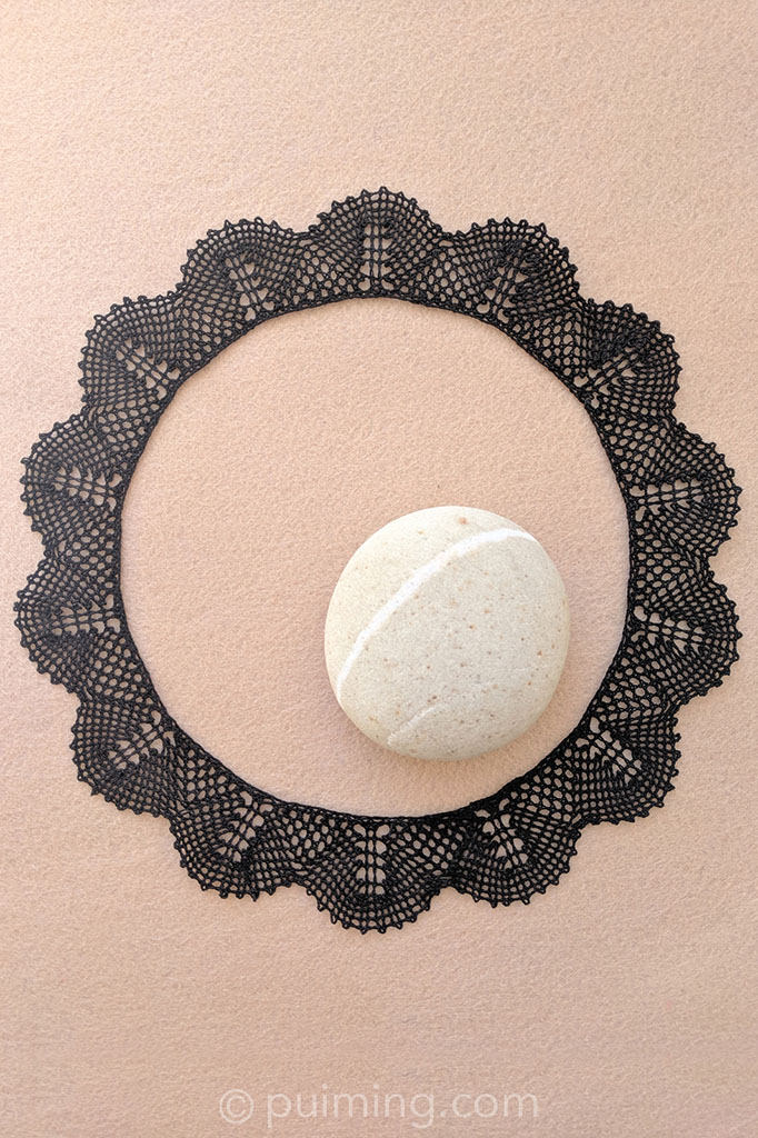 Idrija, Slovenia, has a unique bobbin lace making tradition. Designed by Simona Strgulc Krajšek, this beautiful heart is an iconic pattern, and its level of difficulty is suitable for me to practise as a beginner. To make the lace, I used nine pairs of bobbins and high-quality Fil au Chinois cotton threads, which I bought at Maison Sajou, one of my favourite shops in Paris.
