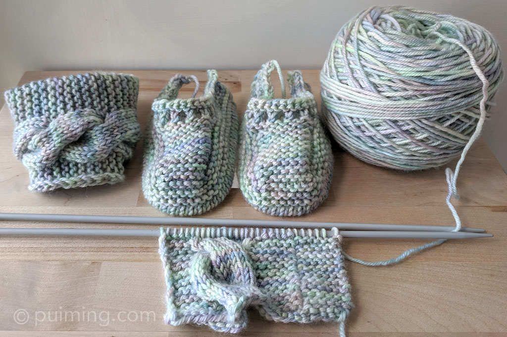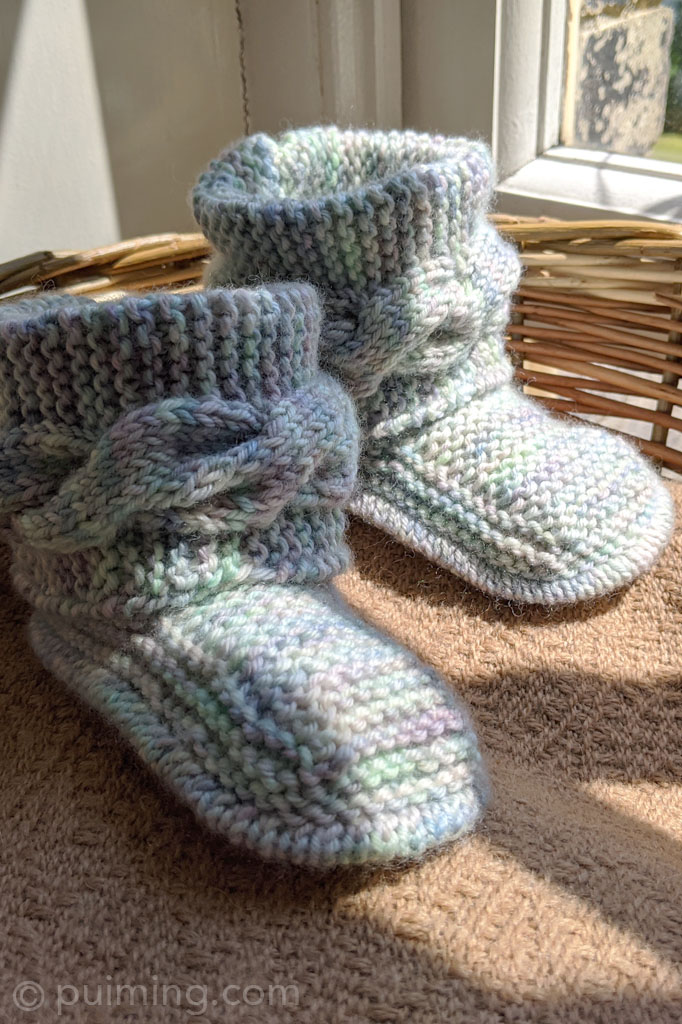 I’ve also been spending time knitting a pair of baby booties for a newborn family member. This is my second time knitting these booties; the last time was for a baby boy, and this time it’s for a baby girl. I’ve chosen the same yarns, as I find the variegated colours suitable for both genders. Click here for more about the booties.