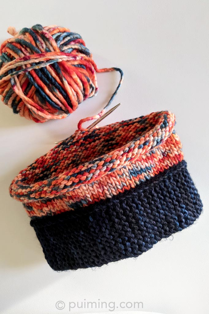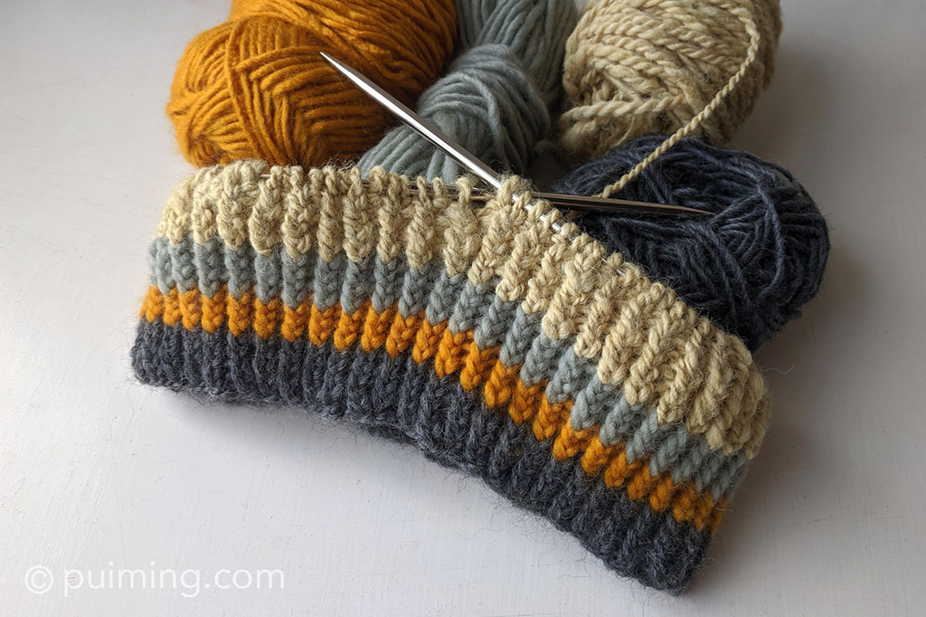 Another project is a beanie for him, intended as a Christmas gift. I’m mixing and matching some leftover yarns that aren’t enough to create something if knitted individually. I tend to go with the flow and let the remaining length of the yarns define the design.