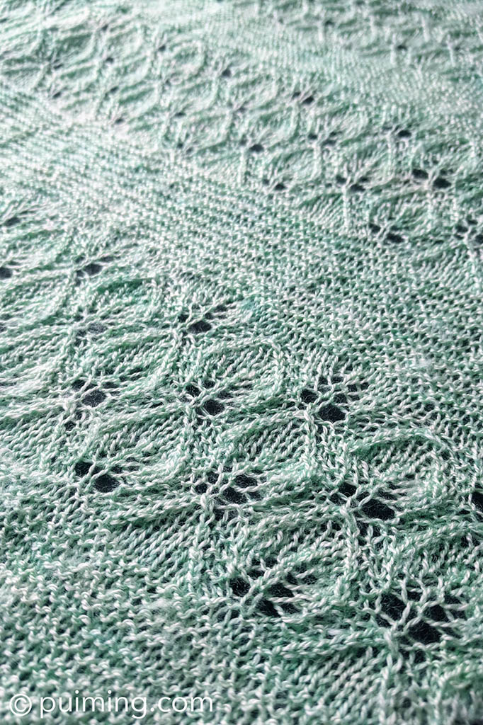 I’ve been working on some Art Deco knits recently. For this project, I chose the Parelli Shawl design from the book Art Deco Knits: Creating a Hand-knit Wardrobe Inspired by the 1920s – 1930s by Jemima Bicknell. The leafy pattern is classic and timeless. Knitting with laceweight yarn is challenging, but the fineness of the completed piece makes it worth all my time and effort. I’m currently working with Trinity 2ply from Townhouse Yarns for this shawl.