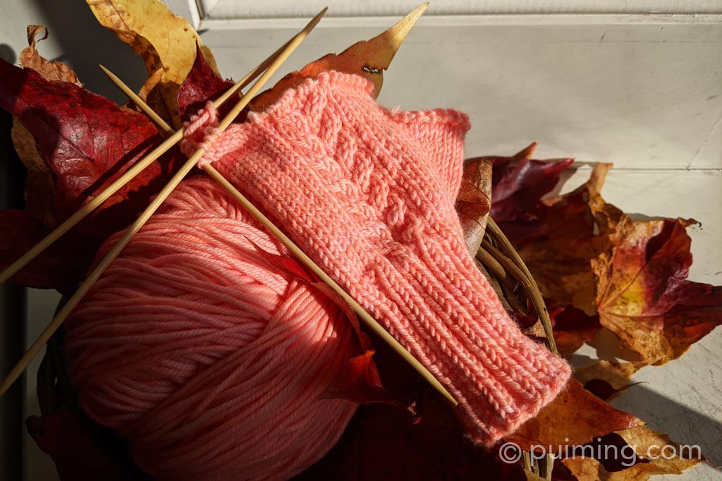 I discovered a large hole in my very old pair of gloves while getting ready to wear them! Repair is an option, but they’re so worn that I’d be better off knitting myself a new pair. What a great excuse to self-learn how to knit gloves using YouTube tutorials! The pattern is indeed simple, incorporating a 2×2 rib, cable stitch, and knit. The left hand is almost finished. I’m now knitting with the peachy Drury DK yarn from Townhouse Yarns on 3mm needles.