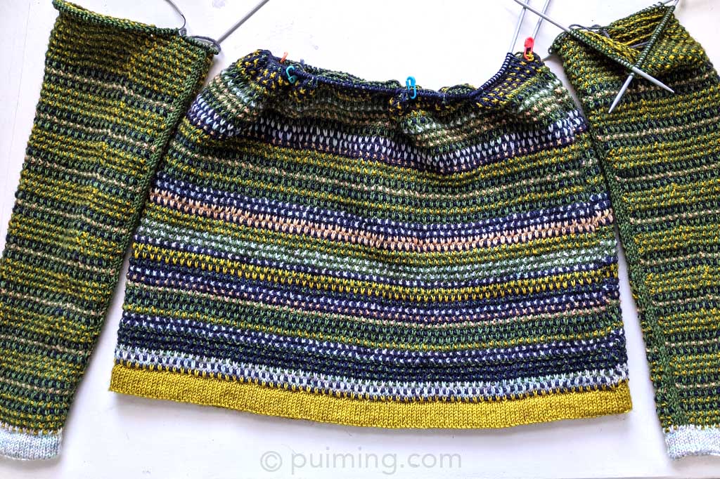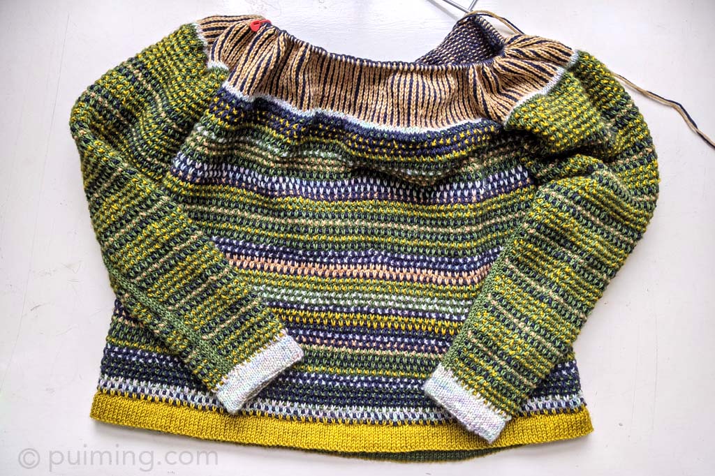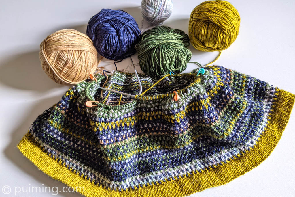 Knitting Stephen West’s Reis sweater provides me with a valuable opportunity to practice color knitting. I didn’t think too much about which color to knit next, so the outcome will only be fully revealed closer to completion. It’s a piece for him, but the pattern itself is gender-neutral. I used Comfy, Tibetan, and Tyrrell DKs from Martin’s Lab, as well as Drury DK from Townhouse Yarns, to knit the sweater. Photos of the completed sweater have been added to my Knitting Collection page.