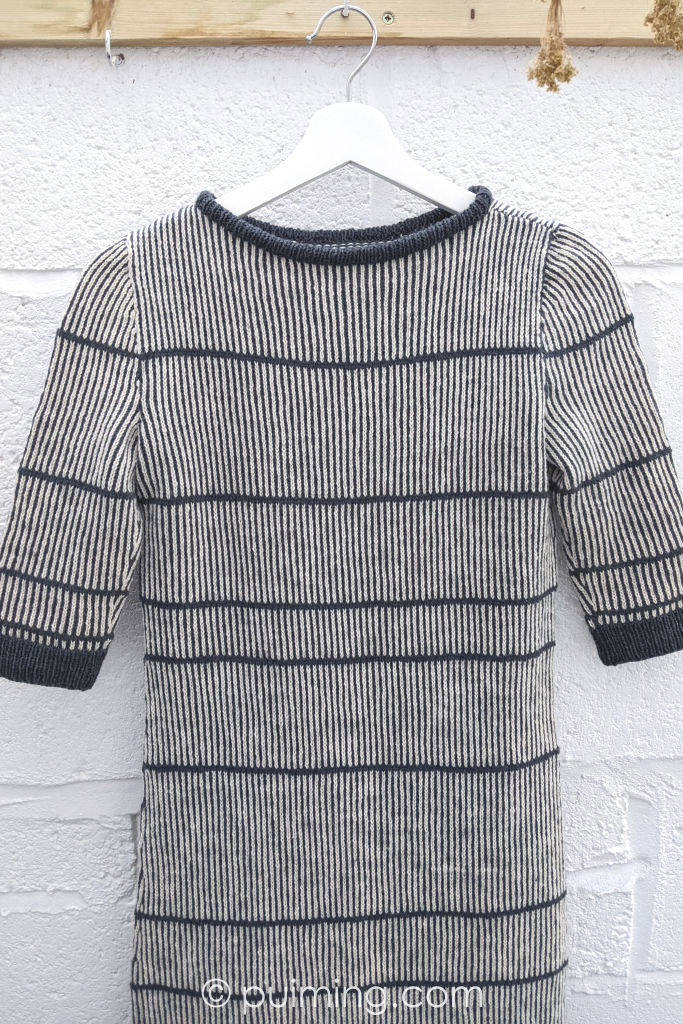 Duet is knitted with one of my favorite organic yarns, Økologisk Sommeruld (70% wool and 30% cotton) from CaMaRose. With its mid-length sleeves and a side slit at the hem, ‘Duet’ is perfect for spring and autumn wear.