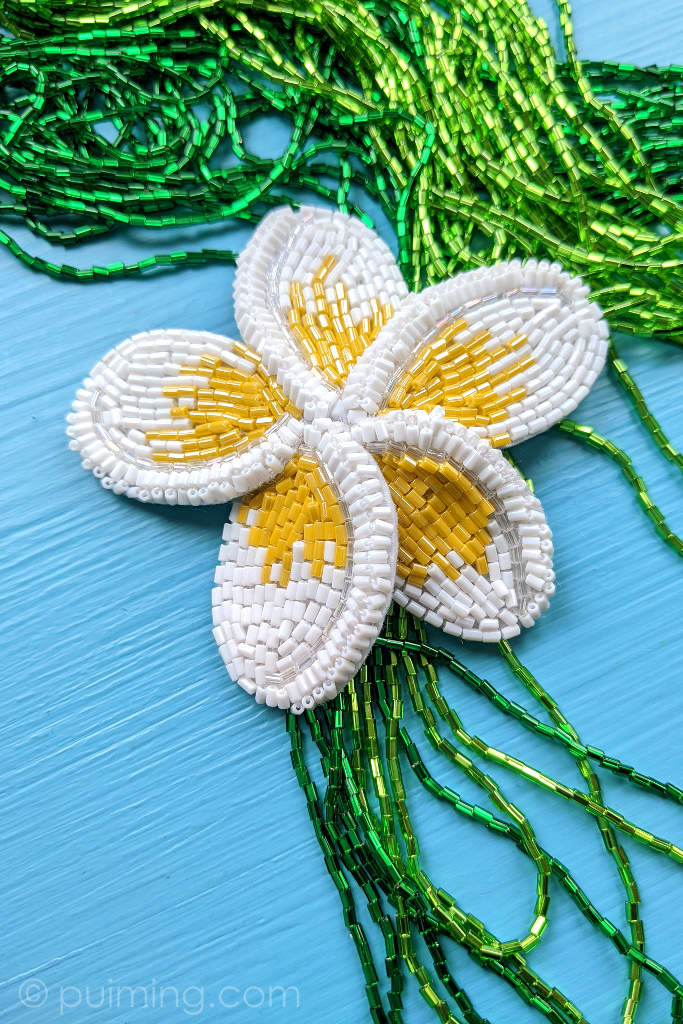 It brings to mind warmth and sunshine, and its fragrance is divine. Without any frangipanis nearby, I nostalgically created one as a brooch.