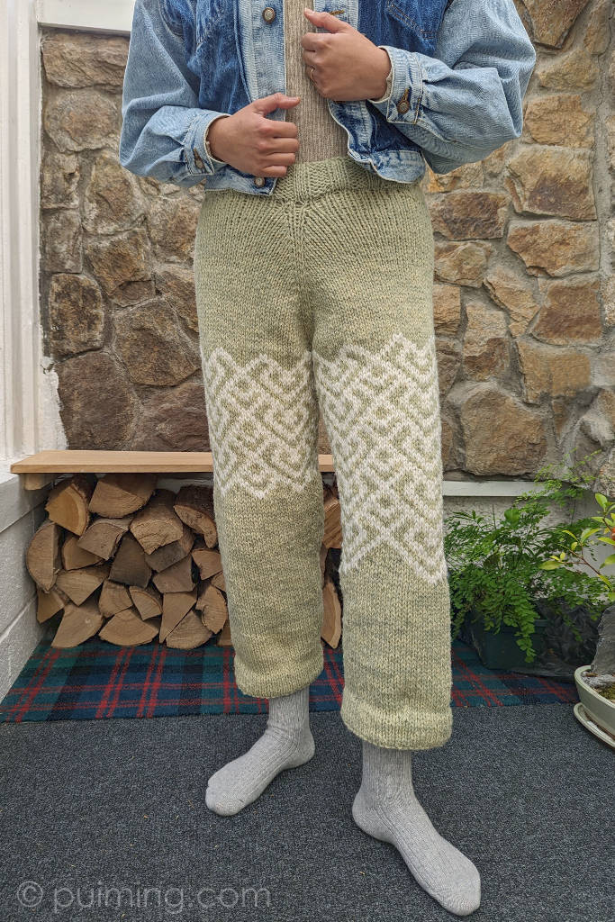 My Cushy Tushy pants, knitted with Irish Yarn Vibes Organic Yarn and Studio Donegal’s Irish Heather Yarn. I’m very glad to have these warm pants for the festive season.