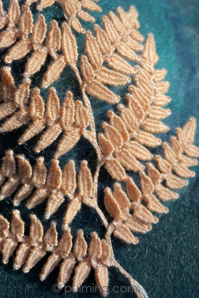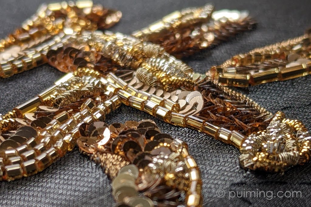 Steady pace wins the race—I’m continuing to add golden beads, sequins, wires, and threads to my latest embroidery piece.