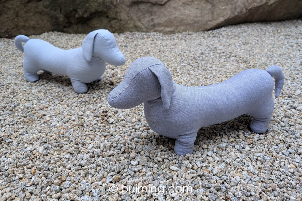 While having a real dachshund is a dream, I handcrafted these two doorstops from cotton fabrics salvaged from old clothes to fulfill my desire.